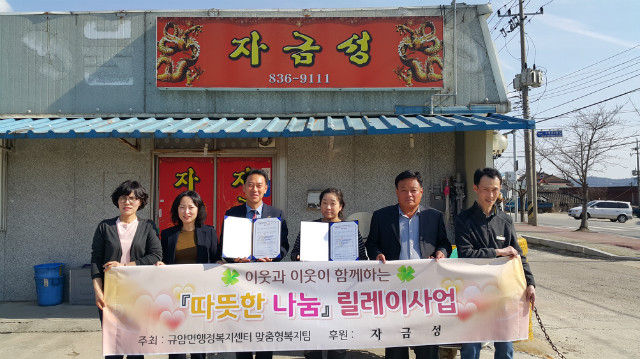 규암면 자금성은 22일 지역주민들에게 맛있고 정성이 담긴 점심식사를 대접하기 위해 따뜻한 나눔 릴레이사업 6호점으로 가입했다.