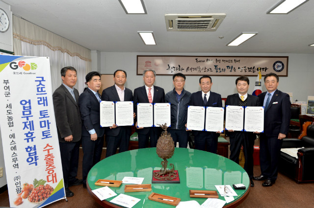 [굿타임] = 이강부 기자 = 부여군은 26일 군수실에서 굿뜨래 10미(味)인 토마토 수출증대를 위해 글로벌 업무협약을 체결했다.