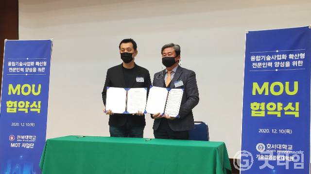 [굿타임] = 이강부 기자 = 호서대학교는 기술경영전문대학원(이하 MOT)이 글로벌 트렌드에 능동적으로 대응할 수 있는 실무능력과 전문성을 겸비한 인재 양성을 위해 전북대학교 MOT 사업단과 상호 업무협약을 체결했다.