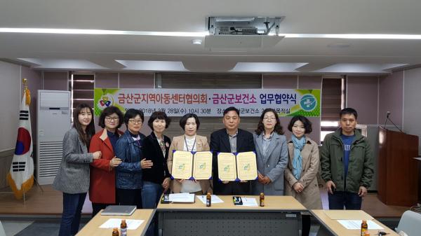 [굿타임] = 이강부 기자 = 금산군보건소과 금산군지역아동센터협의회는 28일 건강과 교육의 통합성에 기초한 지역사회 참여와 협력을 유도하기 위해 업무협약을 체결했다.
