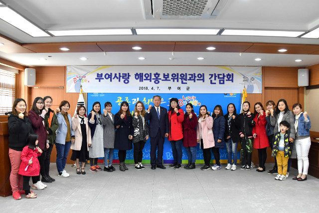 군은 부여군청 브리핑실에서 부여사랑 해외홍보위원 23명을 위촉하고 간담회를 가졌으며 위원들은 즉각적인 소통과 홍보가 가능한 SNS를 통해 세계유산도시 부여의 관광자원과 축제, 굿뜨래 10미 등 농 특산물을 소개하며 부여의 아름다움을 해외에 알린다.