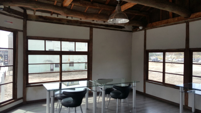 특히 북카페 가장 안쪽 건물은 2층 구조로 복원돼 있어 1940년대 건축물의 특징을 확인할 수 있으며 높지 않지만 2층에서 내다보는 부여시내 풍경과 부소산성의 모습은 이색적인 볼거리를 제공한다.