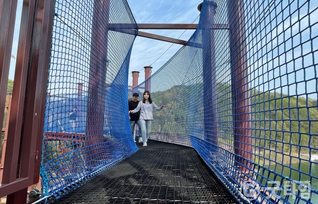 [굿타임] = 이강부 기자 = 청양군이 정산면 천장리 천장호 입구부터 황룡정 구간에 국내 최초 어드벤처 시설 에코 워크를 설치하고 개방했다.