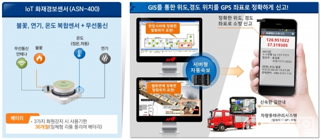 군에 할당된 사용 물량은 전체 300개중 100개(1억원 상당)로 전국 최대 규모로 스마트 화재 경보장치는 불꽃이나 연기, 온도를 3초 만에 감지하는 신속성속에서 감지 신호를 빠르게 분석해 건물 관계자와 관제센터에 알려줌으로 화재 조기 진압을 가능케 하는 첨단 시스템이다.