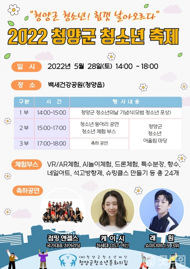 [굿타임] = 이강부 기자 = 청양군청소년재단은 5월 청소년의 달을 맞아 2022 청양군 청소년 축제를 성황리에 마쳤다.