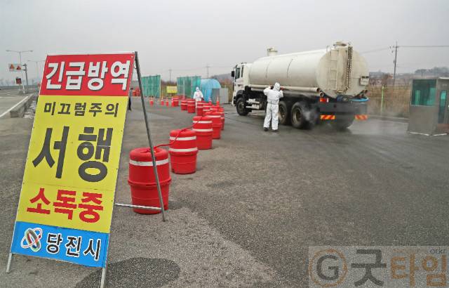 [굿타임] = 이강부 기자 = 지난 4일 당진시 합덕읍 석우리 종계농가에서 발생한 AI가 고병원성으로 확진된 가운데 당진시가 전 공무원을 동원해 확산차단에 행정력을 집중하고 있다.