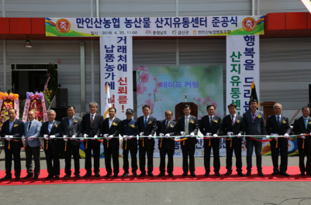 [굿타임] = 이강부 기자 = 금산군 만인산농협 농산물 산지유통센터 준공식이 금산군 신기영 부군수를 비롯한 유관기관 단체장과 참여조직, 농가 등 500여명이 참석한 가운데 개최됐다.