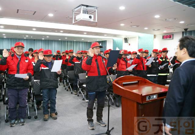 [굿타임] = 이강부 기자 = 당진시는 6일 당진시청 중회의실에서 산불전문예방진화대와 산불감시원, 관계자 등 100여 명이 참석한 가운데 발대식을 갖고 산불발생 제로화를 다짐했다.