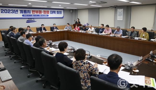 [굿타임] = 이강부 기자 = 계룡시는 이응우 시장 주재로 본청 각부서장과 산하기관장이 참석한 가운데 2023년 반부패 청렴 대책 회의를 열었다.