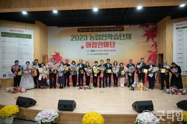 [굿타임] = 이강부 기자 = 논산시가 논산시농업기술센터 대강당에서 열린 2023 농업인 학습단체 화합한마당에 농업인 학습단체 회원 약500명이 자리한 가운데 큰 성황을 이뤘다.