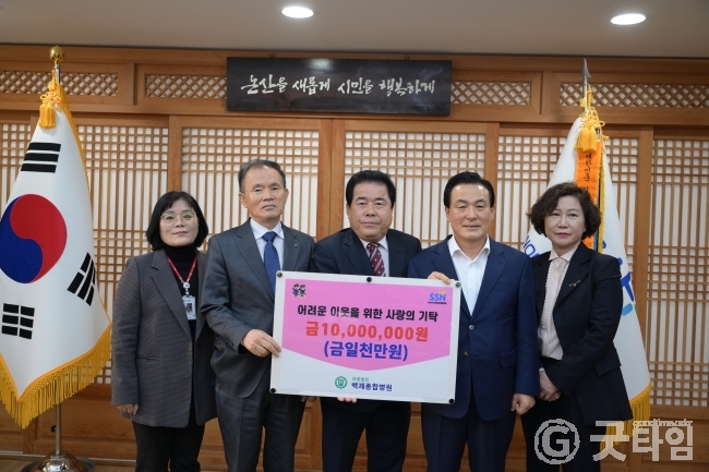 [굿타임] = 이강부 기자 = 충남 제일의 민간 종합병원으로 꼽히는 백제병원이 논산의 어려운 이웃을 위해 써달라며 성금 1000만원을 논산시사회복지협의회로 기탁했다.