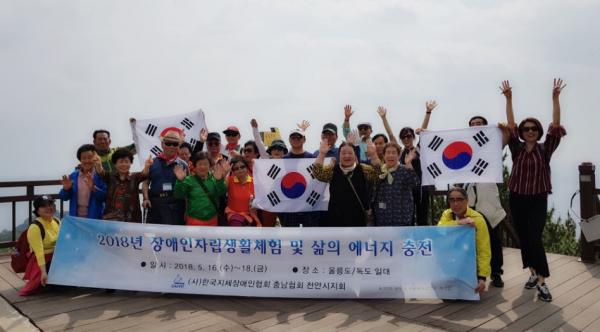 [굿타임] = 이강부 기자 = 사단법인 충남지체장애인협회 천안시지회는 18일까지 32명의 회원과 임직원이 참가한 가운데 울릉도와 독도에서 자립생활체험을 진행했다.