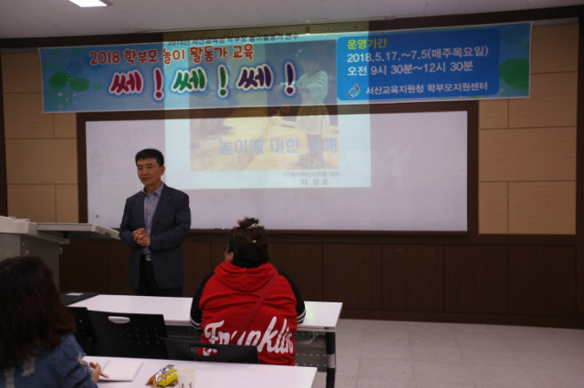 [굿타임] = 이강부 기자 = 충청남도서산교육지원청은 17일 관내 초등 학부모 30여명을 대상으로 학부모전래놀이교육 쎄! 쎄! 쎄!를 개강했다.전래놀이교육은 놀이의 중요성과 가치에 대한 이론교육과 실제놀이교육을 통해 학부모 놀이활동가를 양성해 학교와 놀이문화 확산을 목적으로 오는 7월 5일까지 진행한다.교육에 참여한 한 학부모는 "요즘 아이들은 스마트폰과 게임에 노출돼 놀이문화가 사라져 안타까웠는데 교육이 개설돼 반가웠고 열심히 배워 아이들과 신나게 놀아주고 싶다"고 말했다. 서산교육지원청 관계자는 "아이들이 자라며 제대로 놀지 못하면 사회성과 친구에 대한 배려심이 떨어질 수 있는데 전래놀이 활동가 쎄! 쎄! 쎄! 교육이 건강한 놀이문화 확산과 또래집단간 공동체 문화형성에 기여 할 것"이라고 말했다.