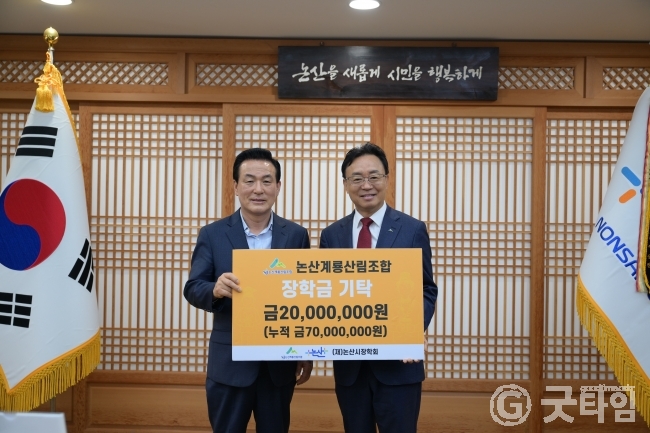 [굿타임] = 이강부 기자 = 논산계룡산림조합은 관내 미래인재 육성을 위해 재)논산시장학회에 장학금 2000만원을 기탁해 지역사회를 훈훈하게 하고 있다.