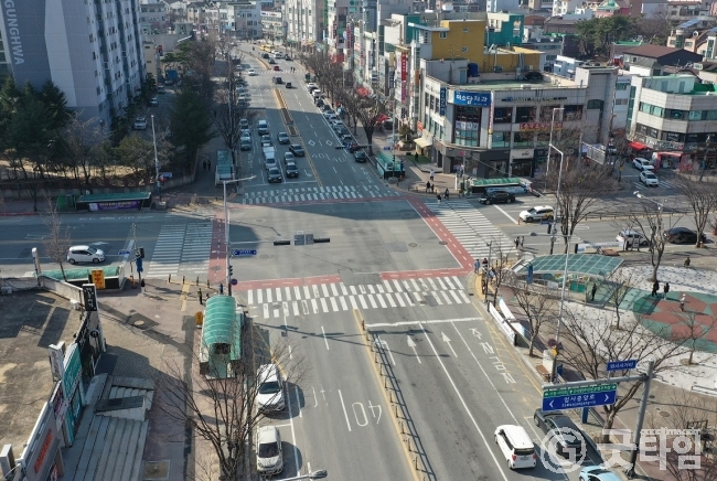 [굿타임] = 이강부 기자 = 계룡시는 시비 5억원을 투입해 차량 통행이 많은 엄사사거리 주변 도로 환경 개선사업을 완료했다.