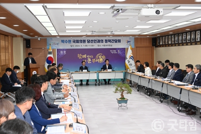 [굿타임] = 이강부 기자 = 부여군은 군청 서동브리핑실에서 박수현 국회의원 당선인과의 간담회를 통해 지역 현안 사업을 공유하고 정부예산 확보를 위한 적극적인 지원을 요청했다.