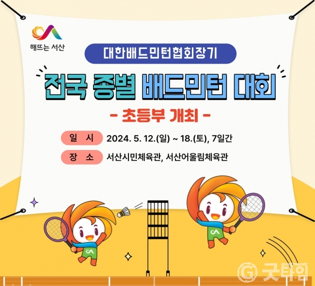 [굿타임] = 이강부 기자 = 서산시는 2024 대한배드민턴협회장기 전국종별배드민턴대회를 오는 12일부터 18일까지 7일간 서산시민체육관과 서산어울림체육관에서 개최한다.