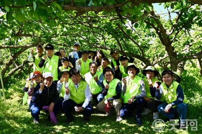 특히 최재구 예산군수와 총무과, 농정유통과, 삽교읍 직원 18명이 지난 10일 삽교읍 상하리 농가에서 배 적과를 하는 등 일손이 부족한 농가에 활력을 불어넣어 의미를 더했다.