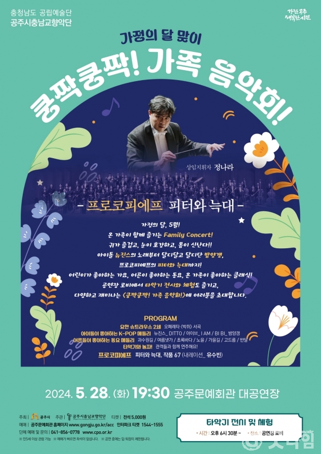 [굿타임] = 이강부 기자 = 충남도 공립예술단 공주시충남교향악단은 가정의 달을 맞아 온가족이 함께 즐길수 있는 패밀리 콘서트를 오는 28일 공주문예회관 대공연장에서 개최한다.