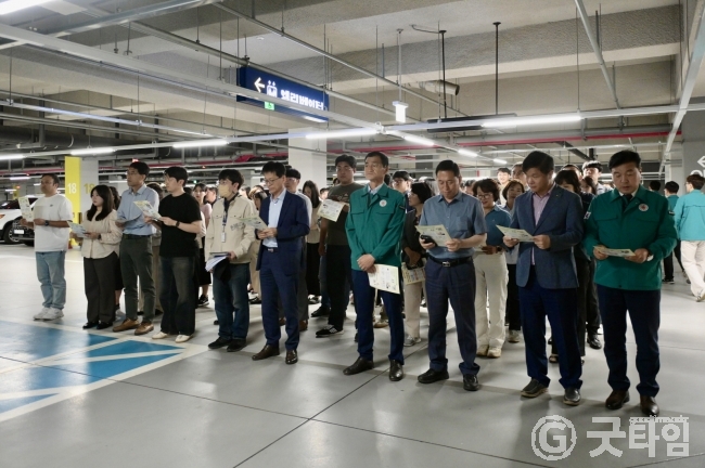 훈련은 공습경보음 송출을 시작으로 건물내 방송을 통한 공습상황 전파, 군청 직장민방위대 소속 안내 유도 요원의 지시에 따른 안전하고 신속한 지하주차장으로의 대피 순서로 진행됐다.