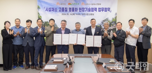 [굿타임] = 이강부 기자 = 공주시는 시청 상황실에서 시설채소 고품질 명품화 현장기술협력 업무협약을 체결했다.