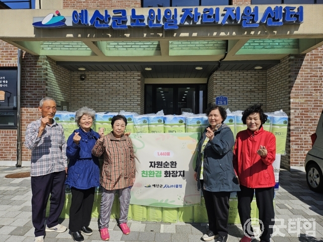 [굿타임] = 이강부 기자 = 예산군 노인일자리 수행기관인 예산군시니어클럽은 가정의 달을 맞아 예산군노인요양원과 수덕사노인요양원에 사랑의 두루마리 화장지 1440롤을 전달했다.