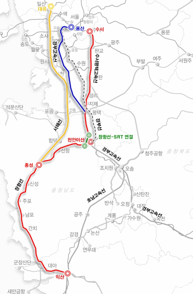 장항선-SRT 연결은 2027년 장항선 개량과 복선전철화 사업 완료로 고속열차 운행이 가능케 되는 시기에 맞춰 추진한다.