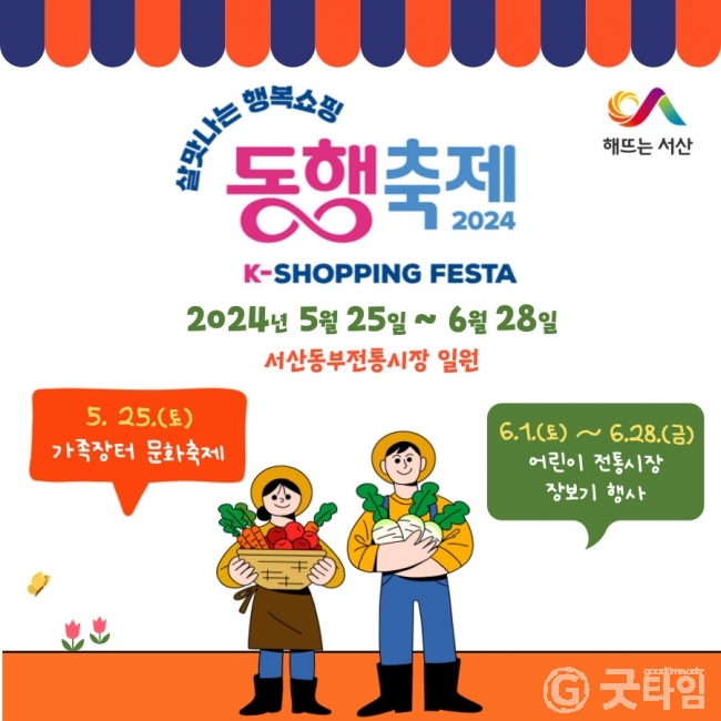 [굿타임] = 이강부 기자 = 서산시는 살맛나는 행복쇼핑 2024 동행축제가 오는 25일부터 6월28일까지 서산동부전통시장 일원에서 진행한다.