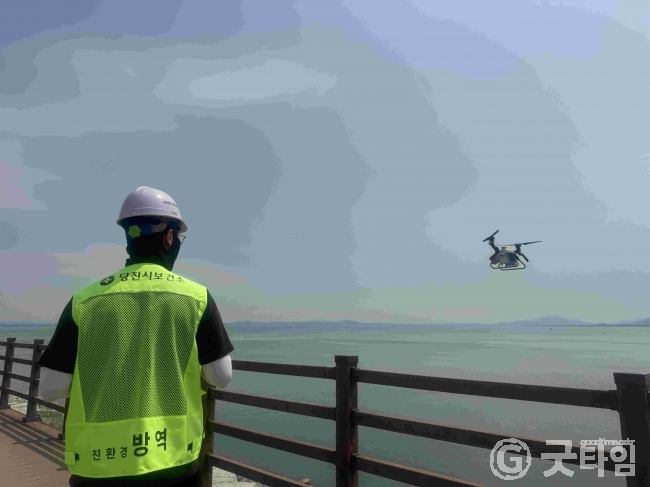 [굿타임] = 이강부 기자 = 당진시보건소는 방역 차량의 접근이 제한된 방역 사각지대를 줄이기 위해 드론 방역소독을 추진하고 있다.