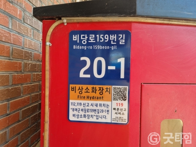 [굿타임] = 이강부 기자 = 부여군은 주민 생활과 밀접한 공공 시설물 88개소에 사물주소 부여후 사물주소판 설치를 완료했다.