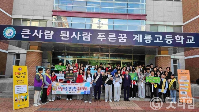 [굿타임] = 이강부 기자 = 계룡시 보건소는 세계 금연의 날을 맞아 관내 중고등학교를 대상으로 등굣길 노담캠페인을 진행했다.