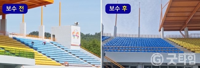 시는 대회를 찾을 관람객에게 깨끗한 도시 이미지를 제공키 위해 노후화된 관중석 의자 보수 방안을 강구했다.