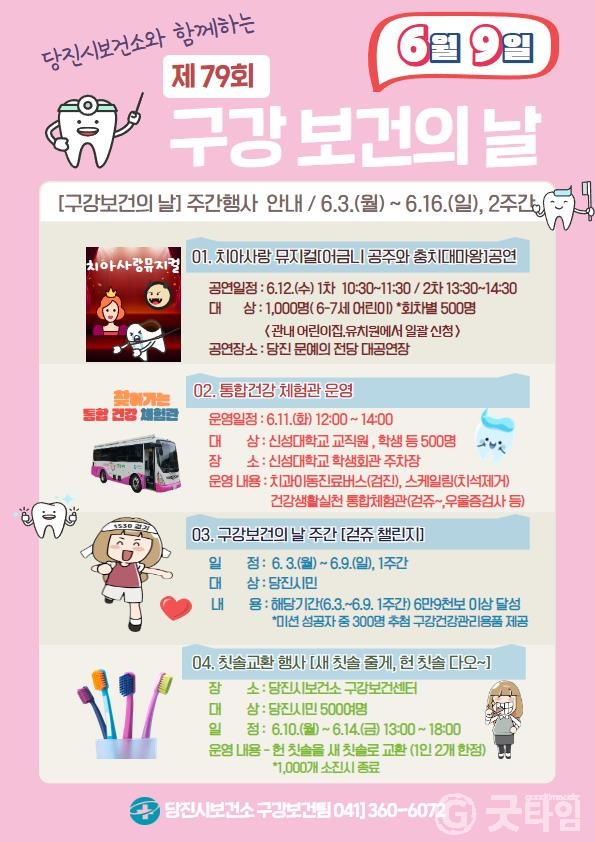 [굿타임] = 이강부 기자 = 당진시보건소는 제79회 구강보건의 날(6월9일)을 맞아 다양한 행사를 진행한다.