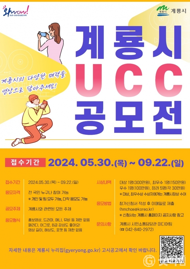 [굿타임] = 이강부 기자 = 계룡시는 전국민을 대상으로 2024 계룡시 영상 공모전을 개최한다.