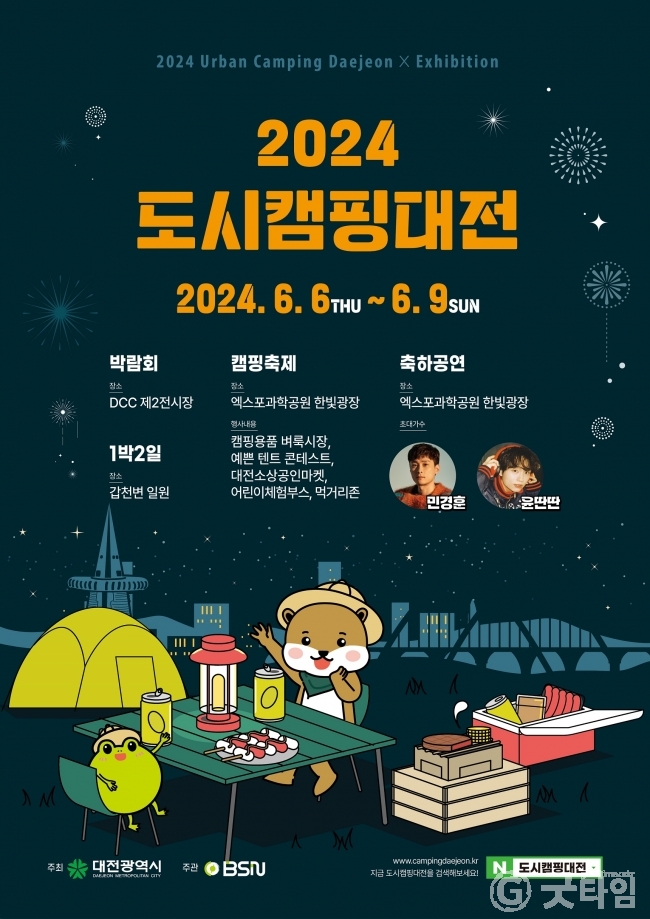[굿타임] = 이강부 기자 = 대전시는 도심속 캠핑과 축제를 함께 즐길수 있는 2024 도시캠핑대전을 6일부터 9일까지 4일간 대전컨벤션센터(DCC) 제2전시장과 엑스포과학공원, 갑천변 일원에서 개최한다.