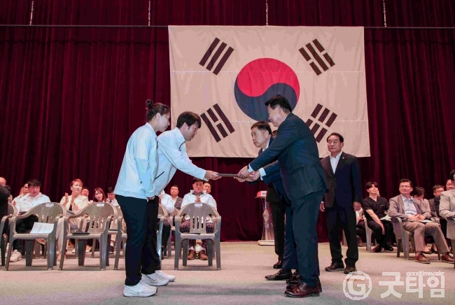 [굿타임] = 이강부 기자 = 당진시체육회는 당진실내체육관에서 당진시 대표선수단의 2024 충남도민 체육대회의 종합우승을 다짐하는 출전식을 개최했다.