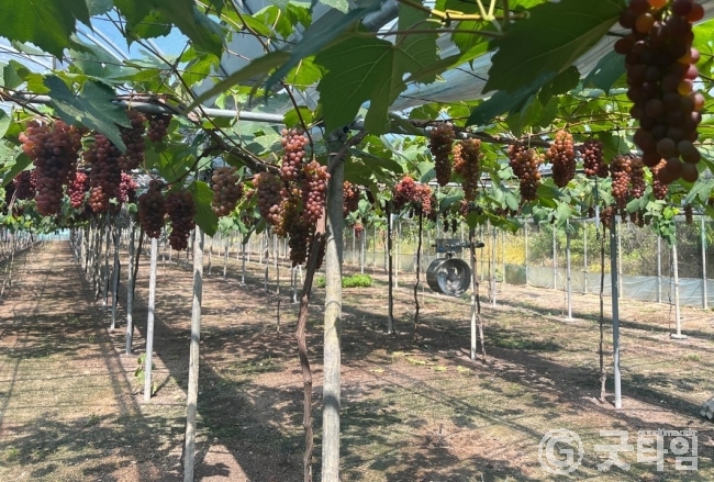 올해는 특히 잦은 비와 흐린 날씨로 일조량이 부족해 재배에 어려움이 많았지만 이를 극복하고 시설포도 생육에 알맞은 온도와 습도를 만든 농가의 노력으로 노지포도의 수확시기보다 일찍 수확을 이뤘다.