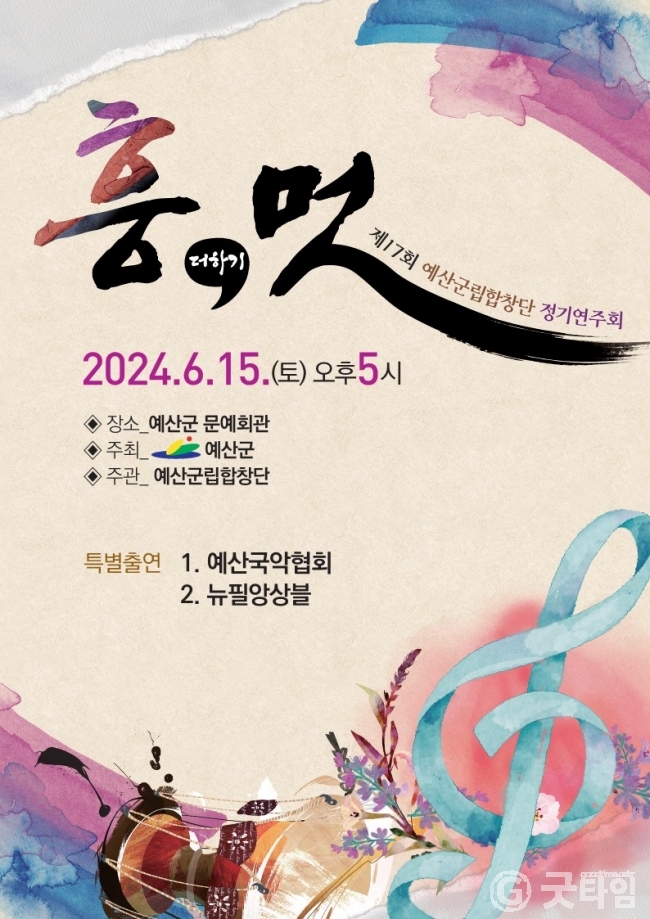 [굿타임] = 이강부 기자 = 예산군립합창단은 오는 15일 예산군문예회관에서 군민을 위한 제17회 정기연주회를 개최한다.