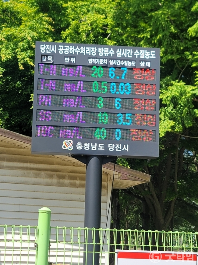 [굿타임] = 이강부 기자 = 당진시는 투명한 공공하수처리시설 운영을 위해 하수처리장 방류 수질 공개 전광판을 설치했다.