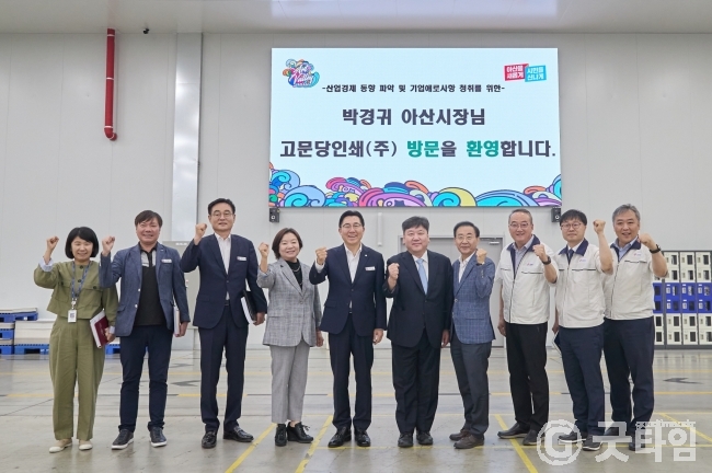 [굿타임] = 이강부 기자 = 박경귀 시장은 고문당인쇄㈜아산공장을 방문해 생산 현장을 둘러보고 애로사항을 청취했다.