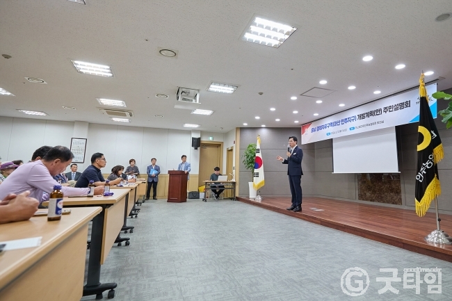 [굿타임] = 이강부 기자 = 충남경제자유구역 지정 신청을 위한 절차가 본격 추진되고 있는 가운데 충남도와 아산시가 충남경제자유구역 인주지구 관련 주민설명회를 인주농협 본점에서 개최했다.