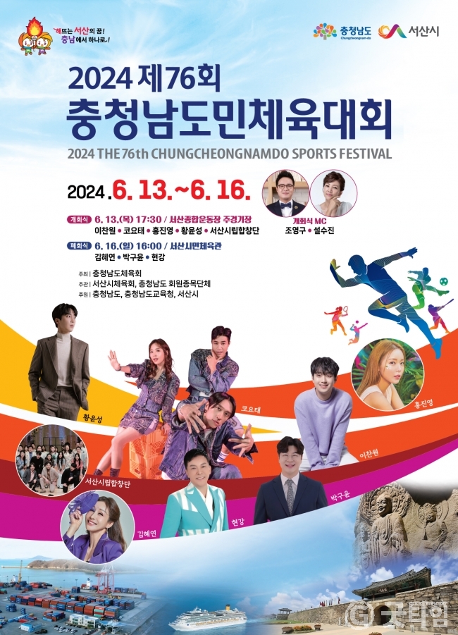 [굿타임] = 이강부 기자 = 서산시에서 오는 13일부터 16일까지 4일간 개최되는 2024 제76회 충남도민체육대회가 이틀 앞으로 다가온 가운데 충남도민이 화합하는 장이 될 예정이다.