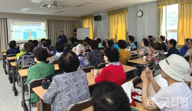 교육은 초록행복누리연구회 소속 권현숙, 장인형 강사를 초빙해 치매인식 개선, 스트레스 관리, 여가활동 등 삶의 질 향상을 위한 자가돌봄 방법과 올바른 영양섭취, 적절한 운동을 통한 치매예방법 등 치매예방을 위한 생활속 실천사항에 등에 대해 알기 쉽게 설명했다.