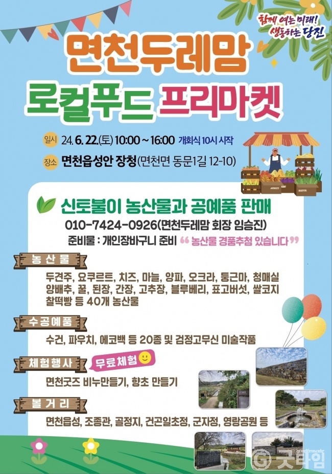 [굿타임] = 이강부 기자 = 당진시 면천두레맘은 오는 22일 면천읍성안 장청에서 면천면 로컬푸드 프리마켓 행사를 진행한다.