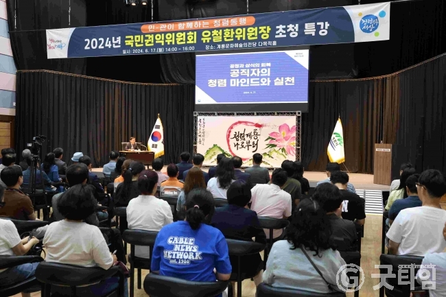 [굿타임] = 이강부 기자 = 계룡시는 계룡문화예술의전당에서 국민권익위원회 유철환 위원장을 초청해 2024년 민관이 함께하는 청렴 특강을 개최했다.