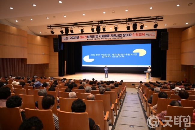 [굿타임] = 이강부 기자 = 논산시는 논산아트센터에서 580명의 일자리사업 참여자를 대상으로 어르신 인권교육을 실시했다.