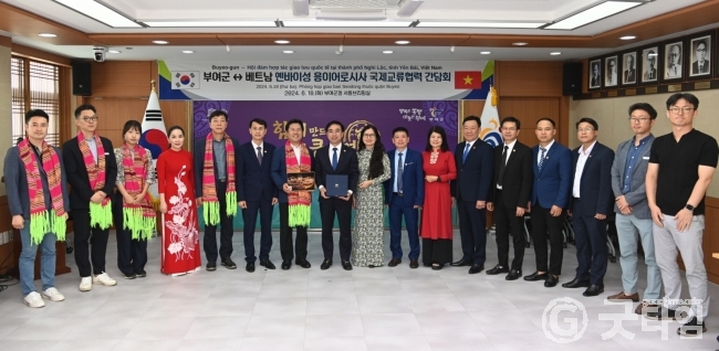 [굿타임] = 이강부 기자 = 부여군은 군청 서동브리핑실에서 베트남 옌바이성 응이아로 시사 대표단과 만나 협력 방안을 논의했다.