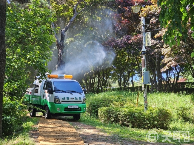 시는 방제 차량 2대와 방제 인력 4명으로 구성된 병해충예찰단을 투입해 6월 15개 읍면동의 가로수와 공원을 대상으로 1차 방제를 완료했으며 해충 발생과 수목 상태 등에 대한 지속적인 점검과 함께 일주일 이상 격차를 두고 2차, 3차 방제를 추진할 방침이다.