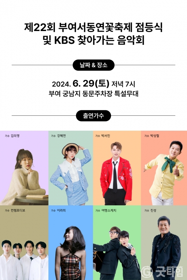 [굿타임] = 이강부 기자 = 부여군은 오는 29일 제22회 부여서동연꽃축제 경관조명 점등식과 KBS 찾아가는 음악회를 개최한다.