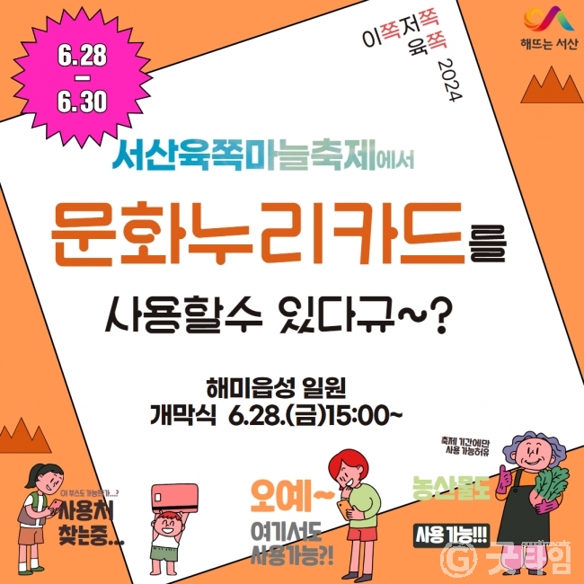 [굿타임] = 이강부 기자 = 서산시는 오는 28일부터 30일까지 3일간 개최되는 제15회 서산6쪽마늘축제에서 문화누리카드를 이용할수 있는 축제 가맹점을 운영한다.